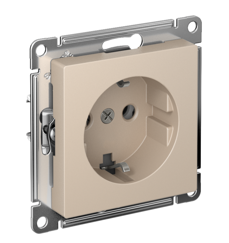 Механизм с быстрозажимными клеммами Systeme Electric (ранее Schneider Electric) серии AtlasDesign в цвете песочный розетки одинарной с заземлением, без шторок подходит для сетей 250 В, на ток 16 А. С помощью новых быстрозажимных клемм монтаж розеток и выключателей стал намного быстрее. Теперь подключение не требует использования отвертки. Лицевые детали из качественного ABS-пластика, устойчивого к царапинам и УФ-излучению.