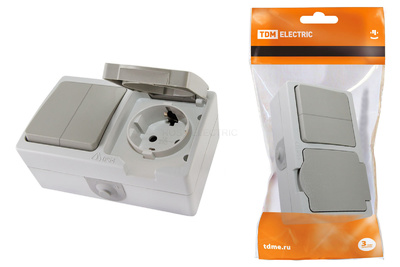 Блок комбинированный (горизонтальный) выключатель 2-кл. + розетка 2П+З с з/ш БКВР IP54 "Вуокса" TDM 1/5