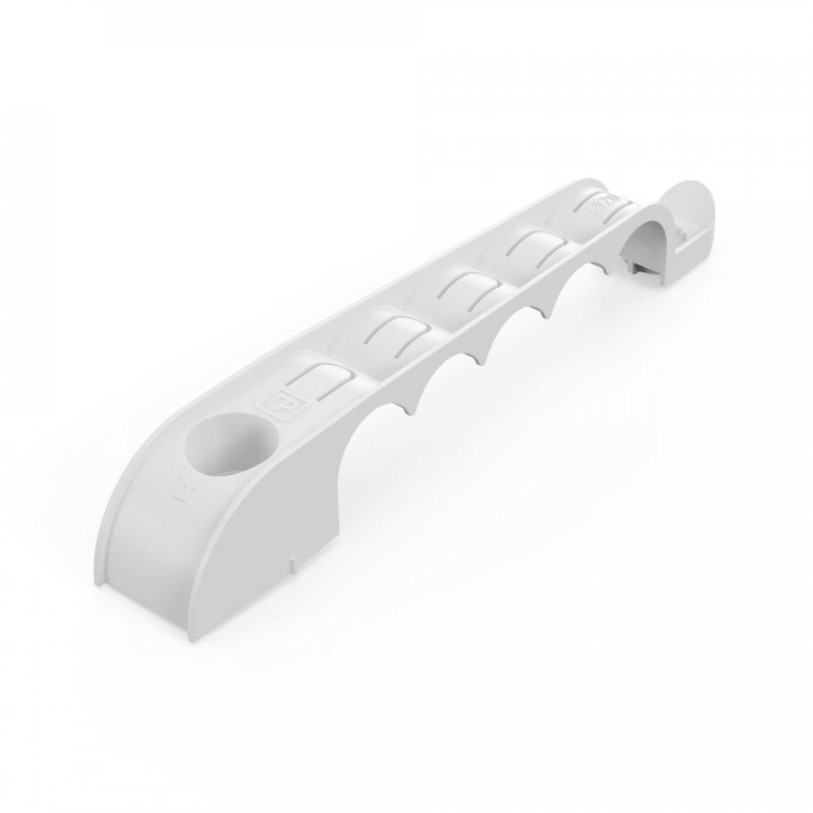 Можно добавить или убрать трубу, просто отогнув держатель. Специальная конструкция: предотвращает выпадение трубы, а насечка внутри держателя — её проскальзывание.