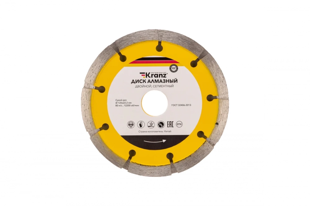 Диск алмазный двойной, сегментный, 125х22,2мм, сухая резка KRANZ