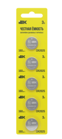 Батарейка дисковая литиевая CR2025 (5шт/отр. блистер) 1/5 IEK