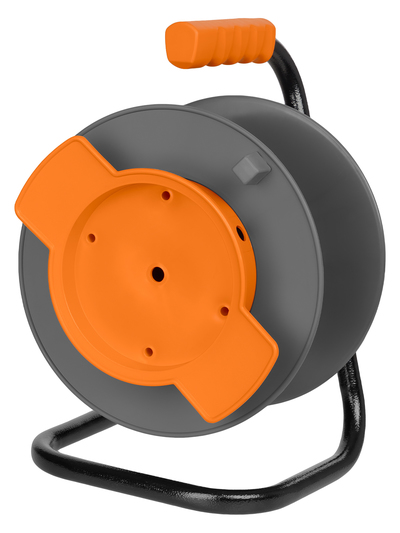 Пластиковая катушка на металлической раме с ручкой и выносным барабаном. Подходит для проводов ПВС и КГ длиной не более 50 метров. Идеально подходит для использования внутри помещений и на открытом воздухе в сухую погоду. Провод в комплект поставки не входит. Катушка используется для хранения и транспортировки удлинителей и проводов, что упрощает их эксплуатацию на строительных площадках, в цехах и загородных домах.