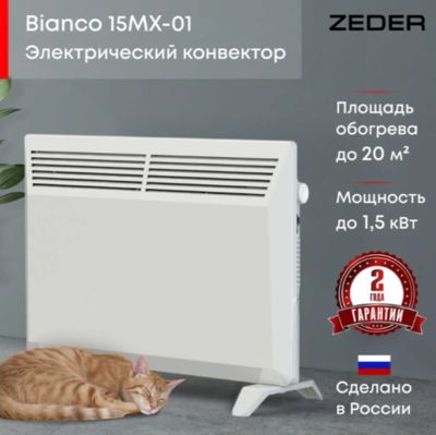 Электрический конвектор Zeder серия Bianco обеспечит эффективный обогрев и комфорт в вашем помещении. Этот надежный обогреватель с механическим управлением и простыми настройками станет отличным выбором для средних помещений площадью до 20 квадратных метров.