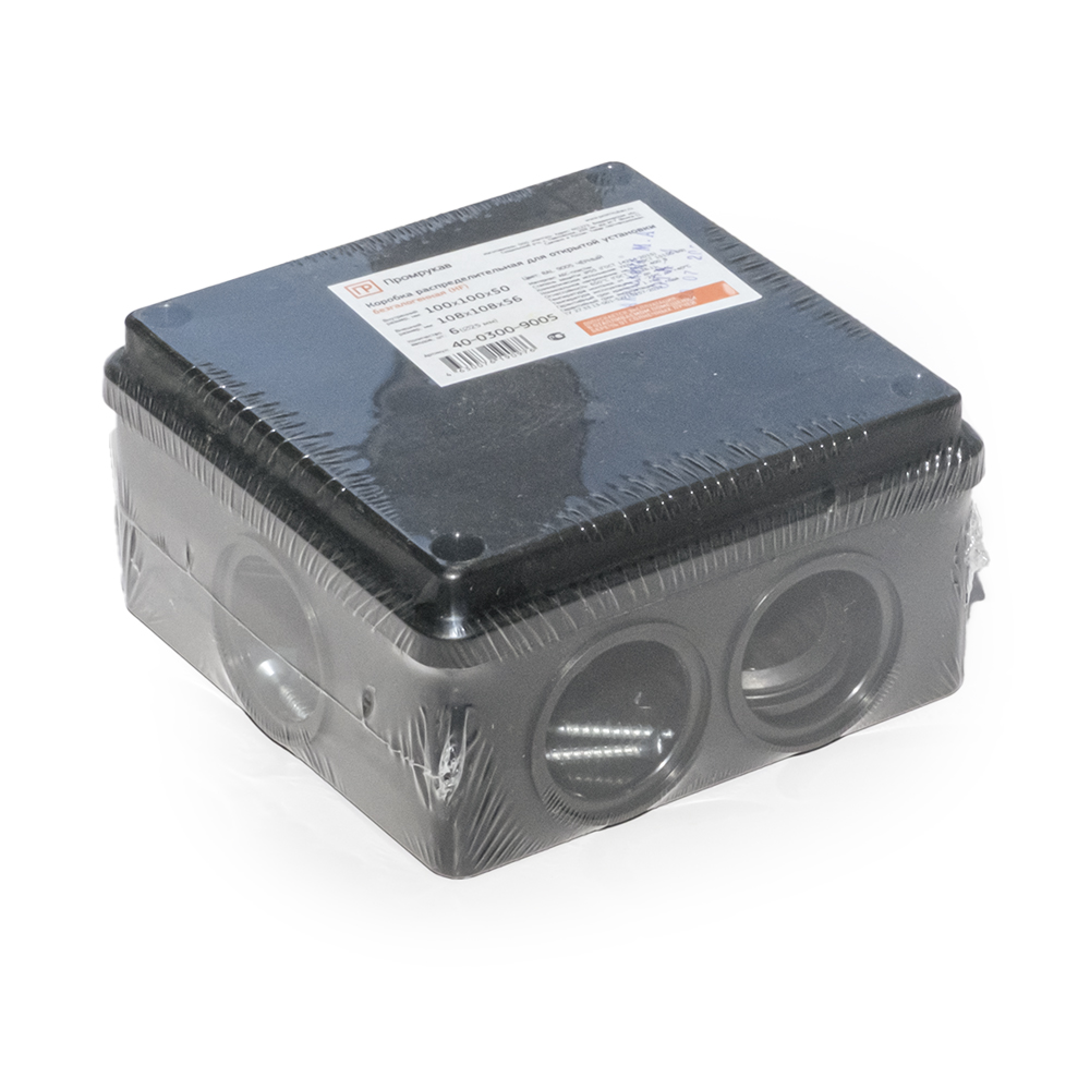Коробка распределительная 40-0300-9005 100х100х50 для о/п безгалогенная (HF) (60шт/кор) Промрукав ЧЕРНАЯ