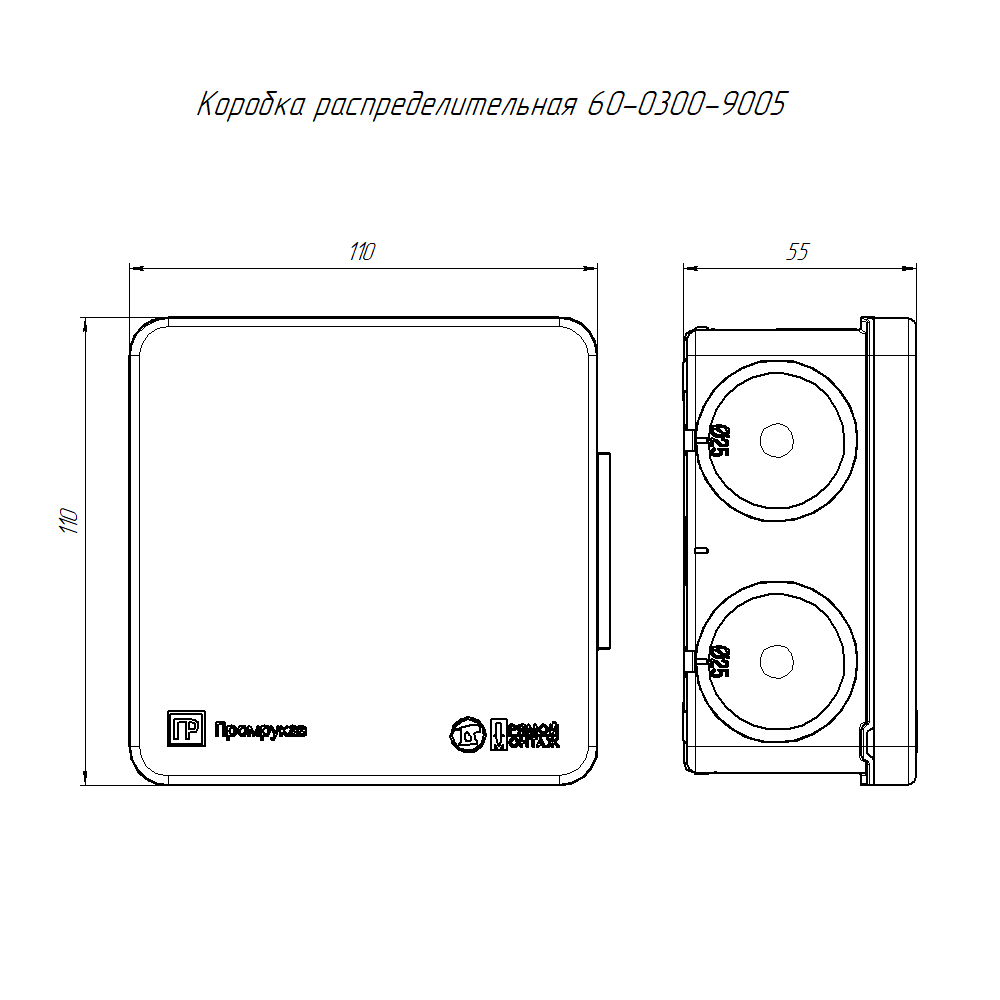Коробка распределительная 60-0300-9005 прямой монтаж двухкомпонентная безгалогенная (HF) 100х100х50 (66шт/кор) Промрукав ЧЕРНАЯ