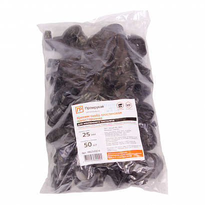 Крепеж-скоба пластиковая односторонняя для прямого монтажа атмосферостойкая ЧЕРНАЯ в п/э 25 мм (50шт/450шт уп/кор) Промрукав