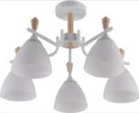 Люстра XA1622/5 WH+WOOD белый+дерево 5х60W E27 d550 h340,