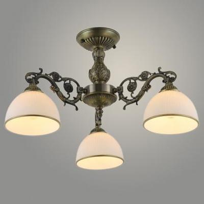 Изящная потолочная люстра, которая объединяет в себе классическую элегантность и современную утонченность. Бронзовый металлический каркас с плавными, изящными завитками поддерживает три белых матовых стеклянных плафона, равномерно рассеивающих мягкий свет и создающих уютную атмосферу в помещении.
