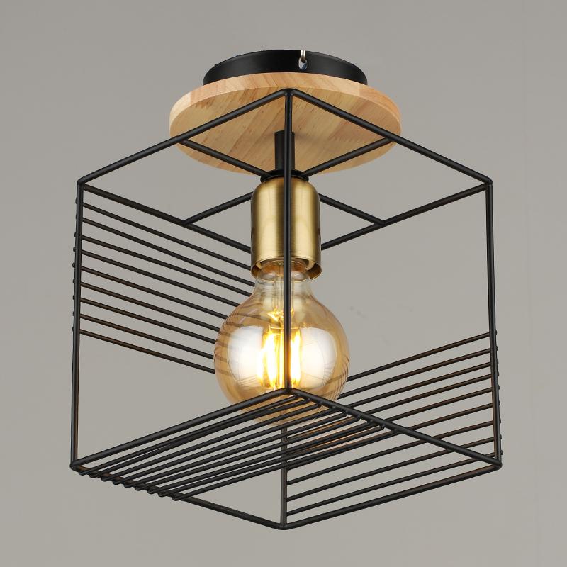 Современная потолочная люстра, сочетающая в себе индустриальный стиль и утончённый дизайн. Центральный элемент — оригинальный металлический кубический плафон чёрного цвета, придающие светильнику динамичность и визуальную лёгкость.