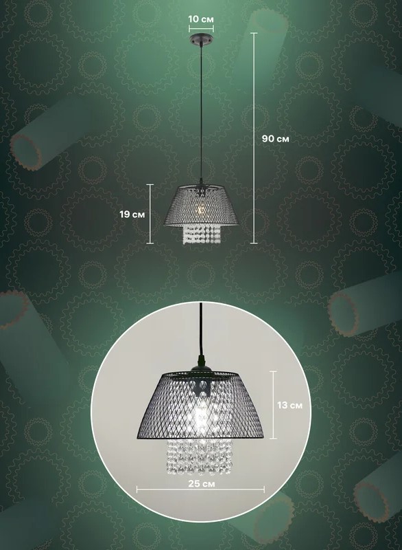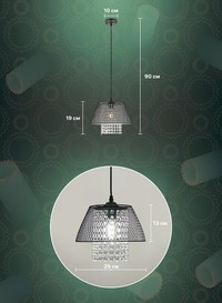 Потолочная люстра серии FERRARA на длинном подвесе предназначена для общего освещения. Черный сетчатый корпус в форме трапеции, сияющие нити из кристаллов добавят изюминку в ваш интерьер. Стандартный цоколь Е27 позволяет использовать светодиодную лампу или лампу накаливания до 60 Вт. Люстра прекрасно дополнит интерьер, выполненный в стиле винтаж или эклектика, украсит кухню, спальню или прихожую. Надежность и качество материалов обеспечат комфортную и долгую эксплуатацию.