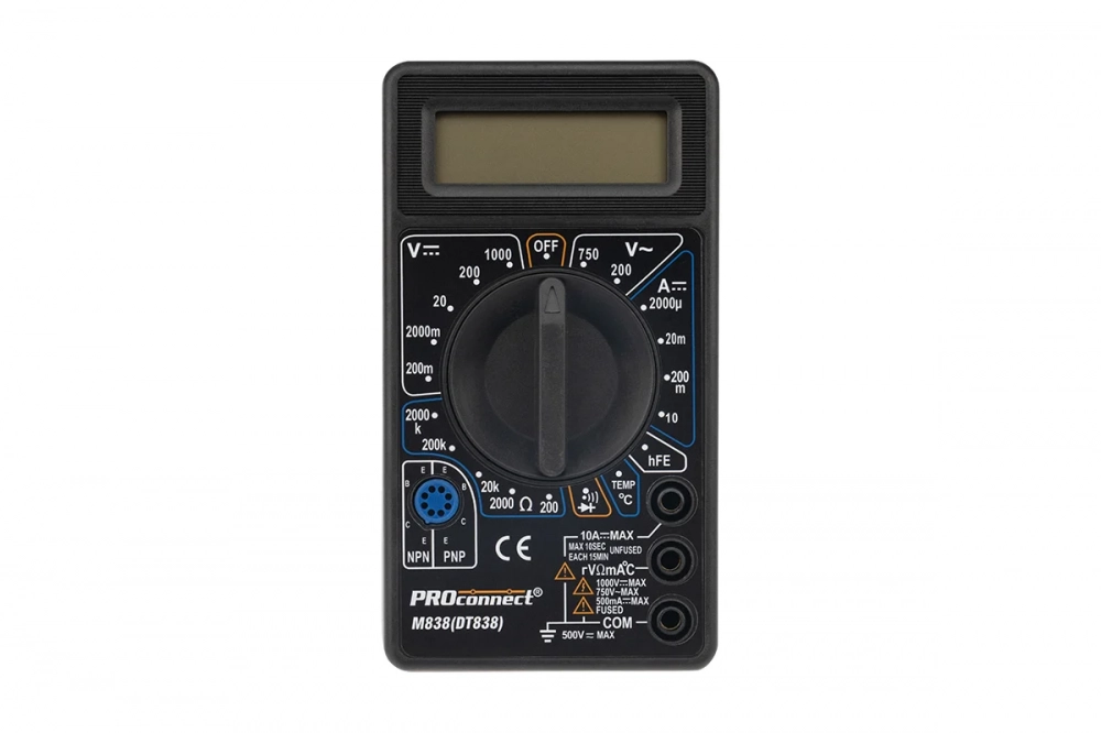 Мульти́метр включает в себя несколько функций и набор измеряемых параметров. Все приборы серии M838 измеряют постоянное и переменное напряжение, постоянный ток и сопротивление в цепи. Также с помощью данного прибора можно проводить тестирование диодов и осуществлять прозвонку целостности цепи. Еще одной отличительной особенностью является функция генерирования прямоугольных сигналов (меандр), эта функция нужна для измерений и преобразований сигнала и в других областях.