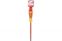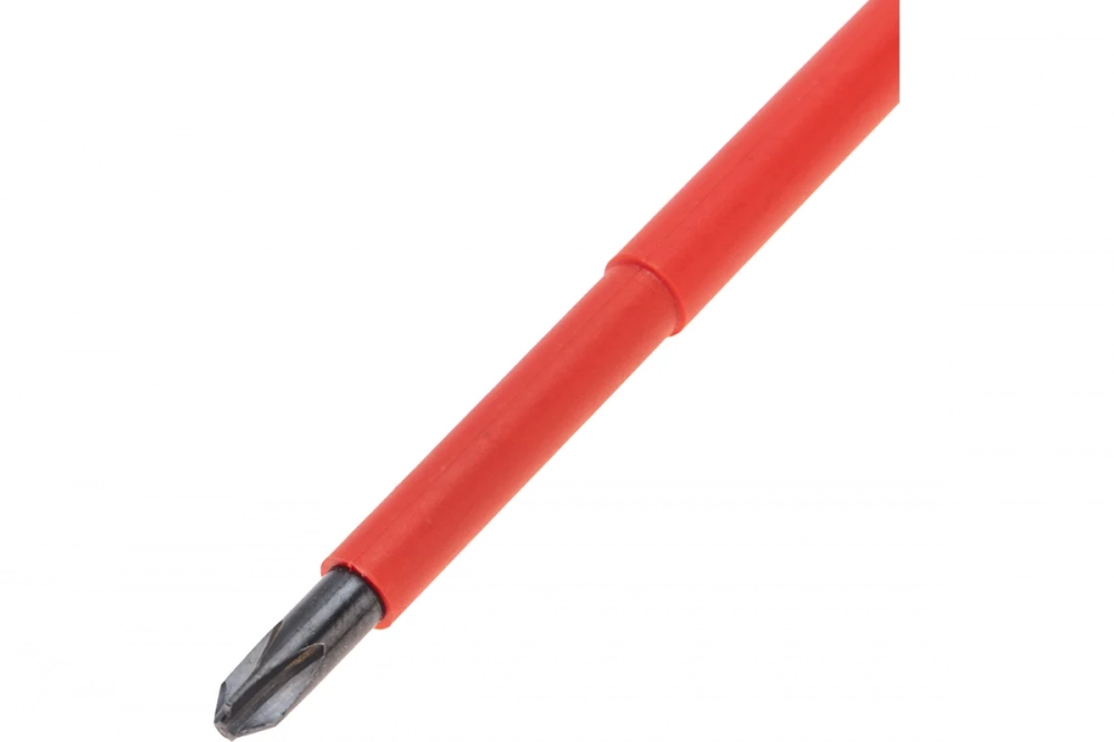 Стержень отвертки, выполненный из высококачественной хромованадиевой стали, покрыт специальным изоляционным материалом и оснащен оксидированным намагниченным наконечником.