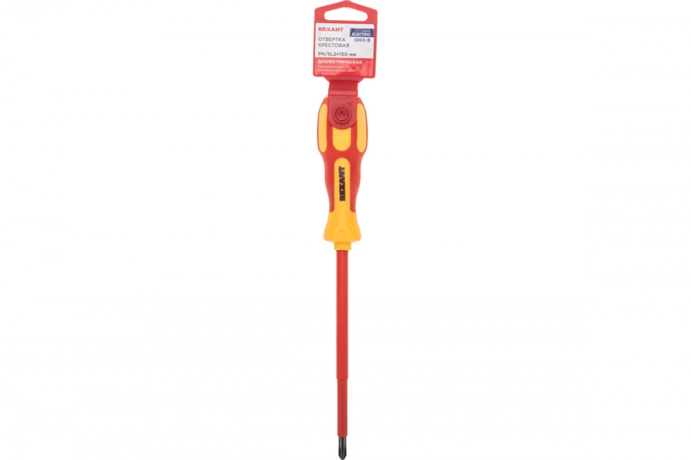 Отвертка крестовая диэлектрическая PH/SL2х150мм, до 1000В, двухкомпонентная рукоятка REXANT