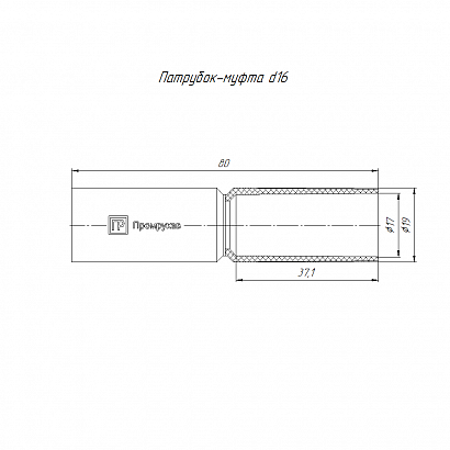 Патрубок-муфта черная d16 мм (100шт/1200шт уп/кор) Промрукав