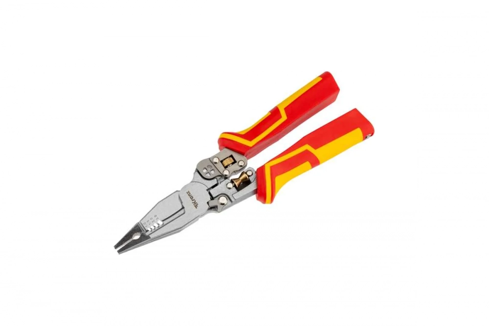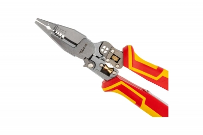 Многофункциональные диэлектрические плоскогубцы – это идеальный инструмент на все случаи жизни, включающий в себя: плоскогубцы, тонкогубцы, бокорезы, инструмент для зачистки кабеля, резак для проводов, инструмент для разделки и снятия оболочки, инструмент для скрутки кабеля, инструмент для обжима клемм, тестер для определения фазы-ноль.