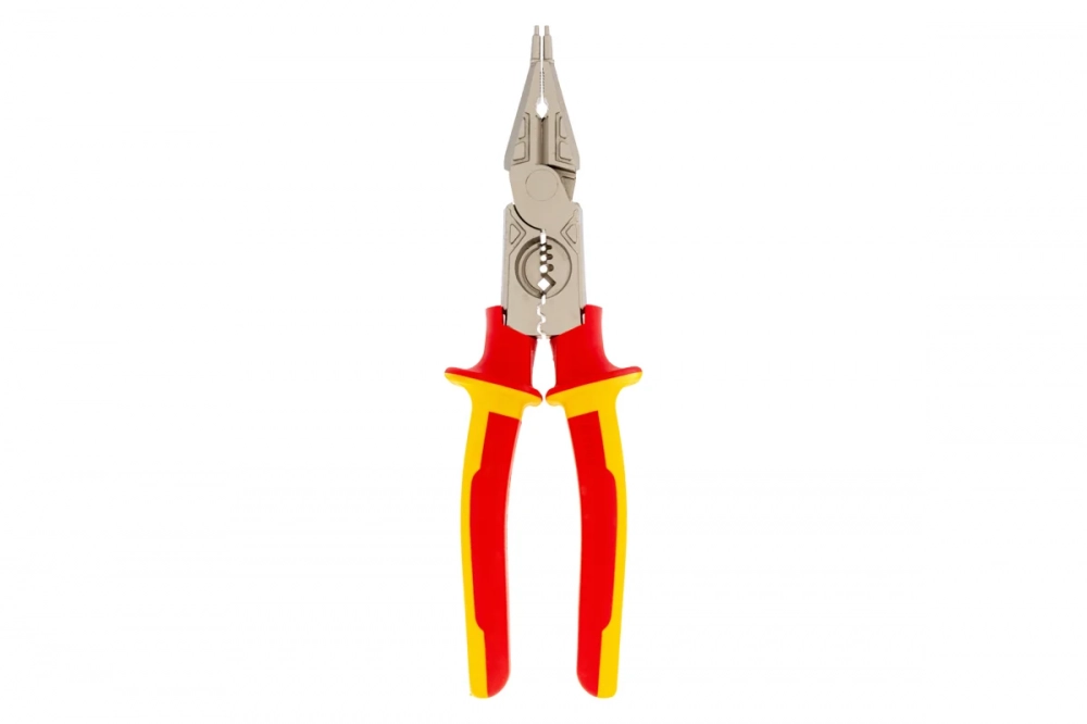 Многофункциональные диэлектрические плоскогубцы – это инструмент на все случаи жизни, включающий в себя: плоскогубцы, бокорезы, инструмент для зачистки кабеля, инструмент для обжима клемм.
