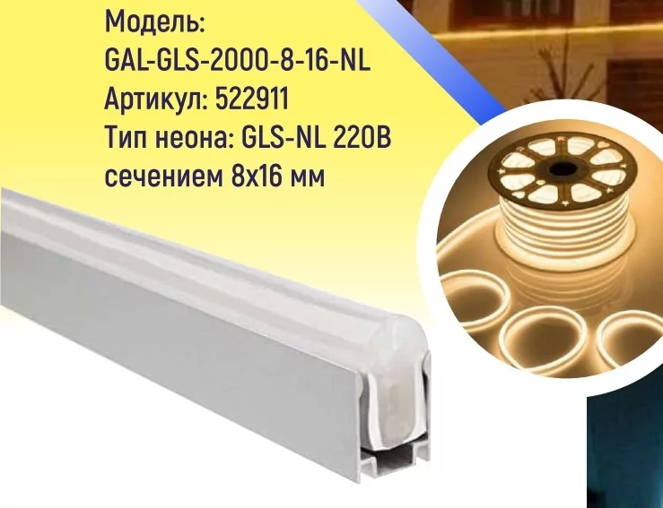 Профиль GAL-GLS-2000-8-16-NL (2м профиль для неона 8*16мм)