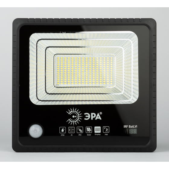 Прожектор ЭРА ERAPRO-100 функционирует на солнечной батарее и имеет высокую степень защиты от влаги и пыли (IP65). Работает как при низких, так и при высоких температурах (от - 20 до + 50 градусов). Уличный прожектор оснащен морозоустойчивым сменным аккумулятором Li-FePO4. Питание происходит от солнечной панели, время заряда - 8 часов. В прожекторе установлены яркие экономичные LED элементы последнего поколения: 208 светодиодов. Главное преимущество – встроенный датчик движения. Время до перехода в дежурный режим - 30 секунд. Датчик движения можно отключать, если для вас он неактуален. И снова включать, если опция понадобилась. В комплект также входит пульт дистанционного управления, который позволяет на расстоянии включать и выключать свет, отключать датчик движения, устанавливать таймер работы, регулировать яркость. Выбирайте прожектор ЭРА ERAPRO-100 и освещайте участок!