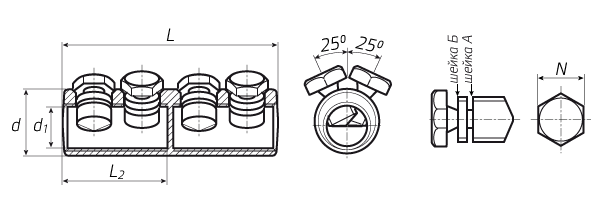 - Каждый болтовой соединитель является мультиразмерным и рассчитан на диапазон сечений кабеля