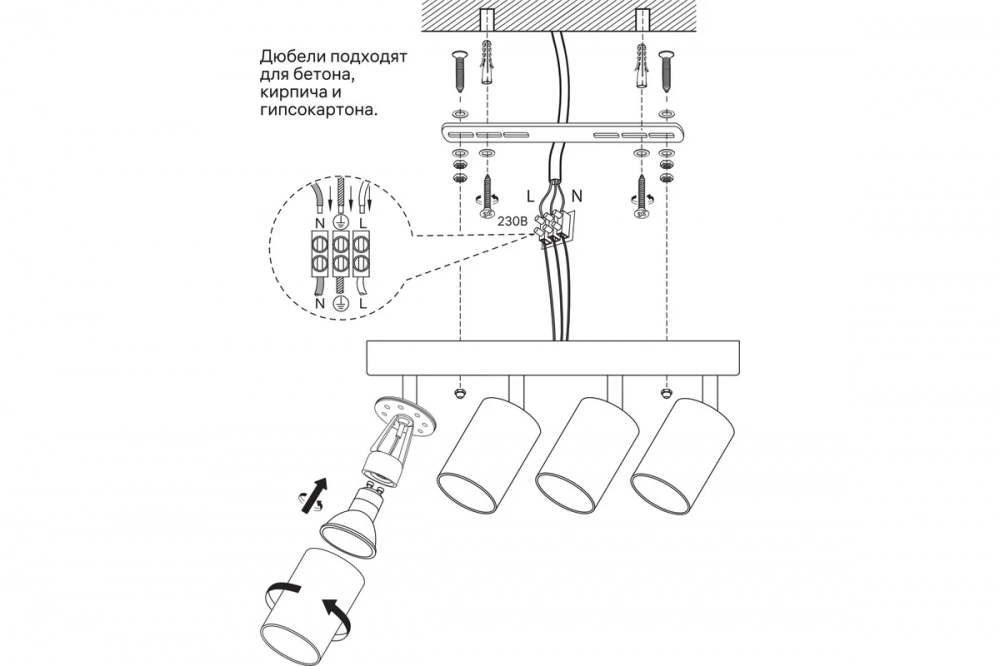 Накладной поворотный светильник RITTER Arton предназначен для акцентного освещения интерьера. В светильнике предусмотрены четыре лампочки с цоколем GU10. Светильник просто монтируется и надежно фиксируется.