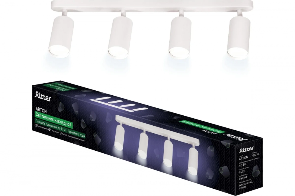 Накладной поворотный светильник RITTER Arton предназначен для акцентного освещения интерьера. В светильнике предусмотрены четыре лампочки с цоколем GU10. Светильник просто монтируется и надежно фиксируется.