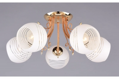 Люстра от российского бренда РОССВЕТ идеально впишется в интерьер гостиной, спальни или студии. Плафоны, направленные в разные стороны, создают рассеянное ровное освещение и неповторимую игру света. За счет своего компактного размера, подходит для невысоких потолков. Изысканное основание отличается плавностью изгибов. Декор в виде веточек дерева добавит неповторимую изюминку в интерьер.