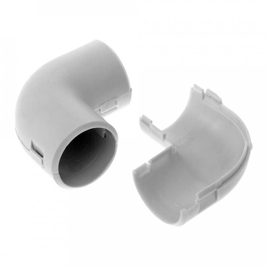 Угловой соединитель разборный - предназначен для соединения гофрированных труб или гладких труб из пластика под углом 90°.