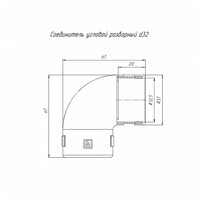 Разборный соединитель угловой д. 32 "Промрукав" в п/э уп. 30 шт/уп (300 шт/кор)